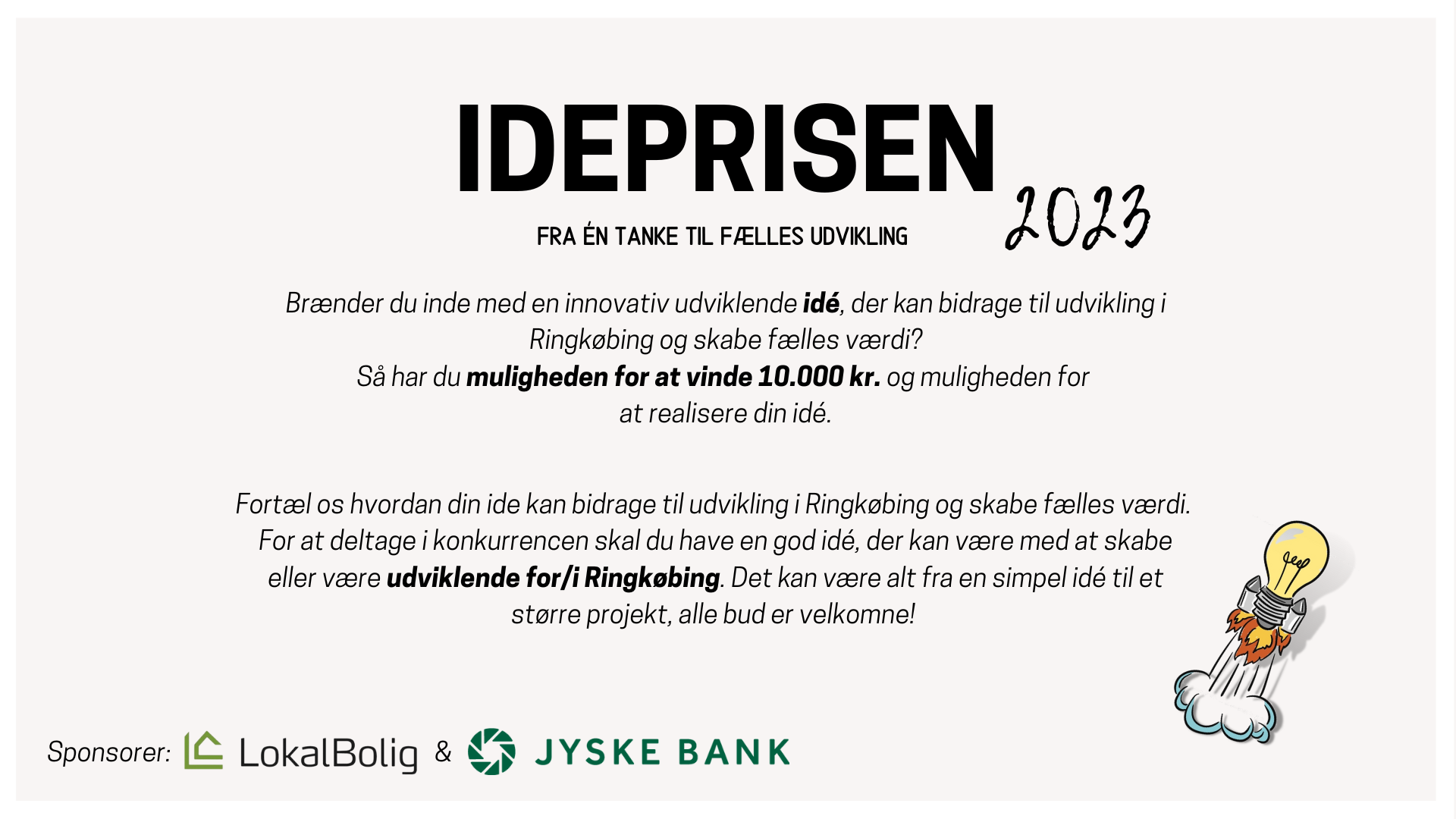 Ringkøbing Udviklingsforum har den 9. marts 2023 sammen med LokalBolig Ringkøbing og Jyske Bank uddelt Idéprisen 2023.